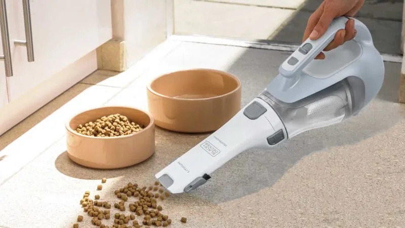 The Black+Decker handheld vacuum uses a lithium ion battery and can hold a charge for up to 18 months. The dustbowl has a 20.6 oz capacity and is translucent to show the dirt captured inside. It uses cyclonic action to help keep the filter clean and also has a rotating nozzle to be used for a variety of applications. Both the bowl and filters are removable and washable, and the vac comes with a 2-year limited warranty.